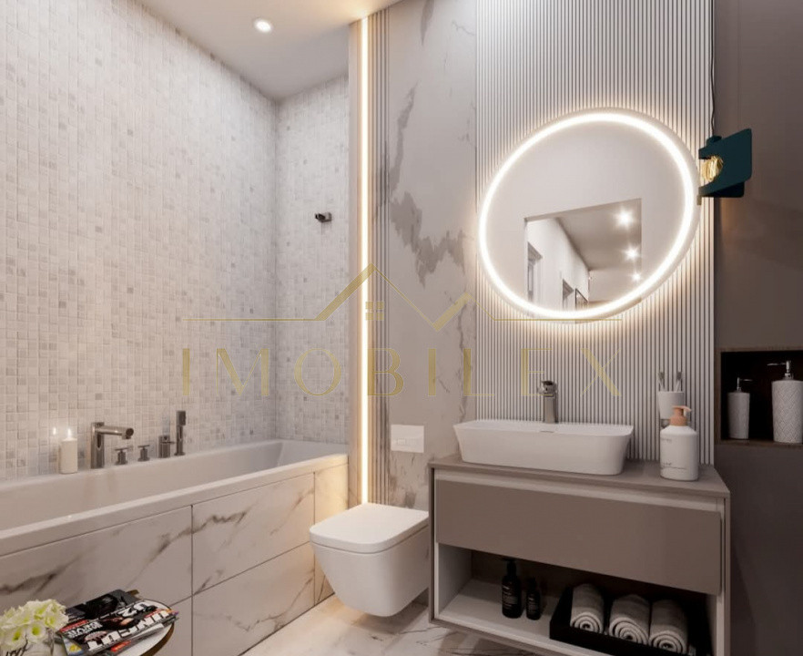 Locuința impresionează prin compartimentarea foarte bună, finisajele elegante și terasa generoasă de 14 mp cu vedere deschisă asupra orașului – un avantaj rar pentru un apartament de 2 camere.