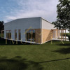 Casă pe structură metalică în stil scandinav, aflată în stadiu de construcție, concepută ca un spațiu amplu tip open-space, oferind libertate totală de compartimentare în funcție de nevoile viitorului proprietar.