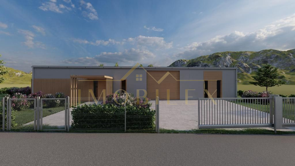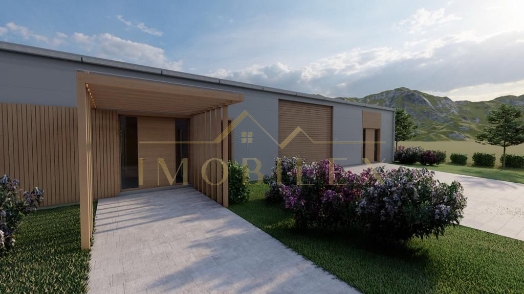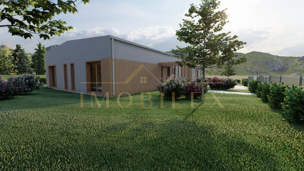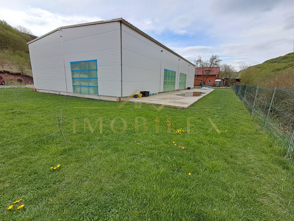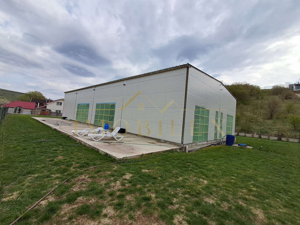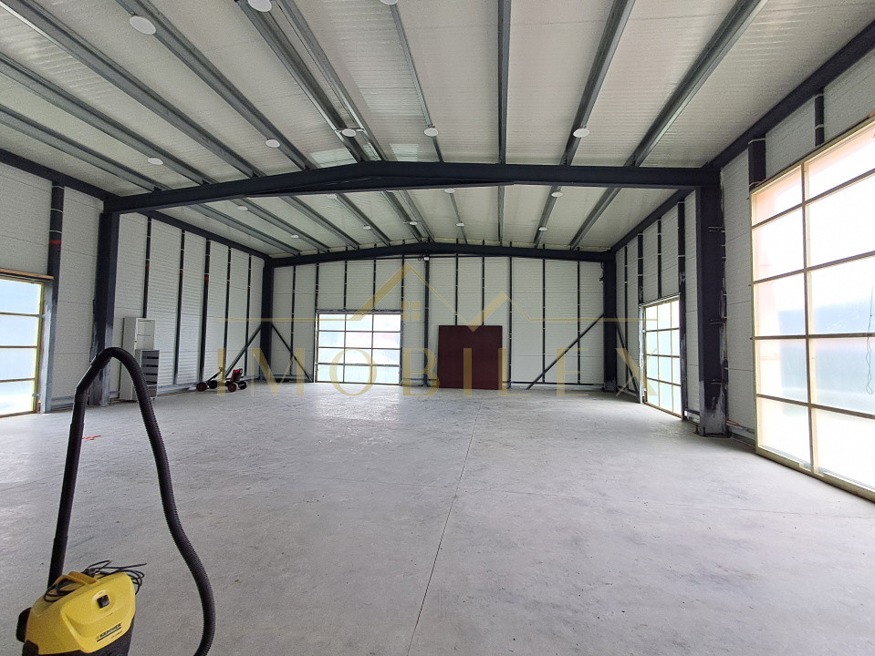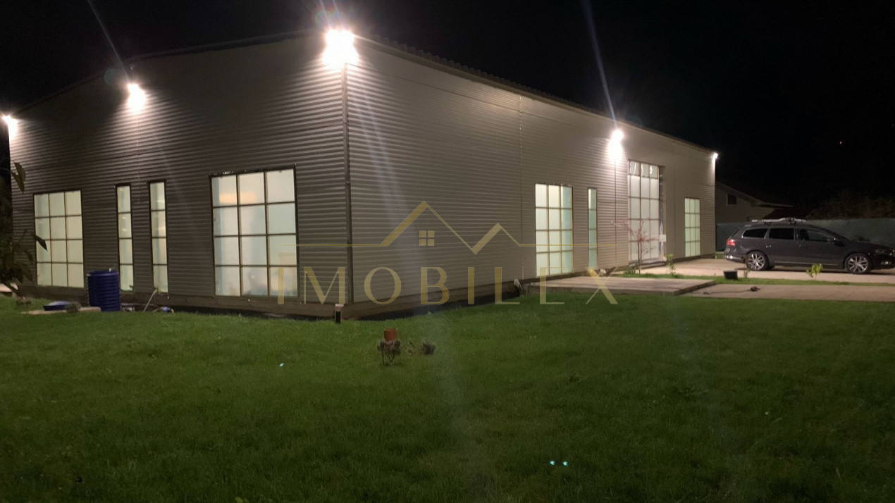 Construcția este realizată pe cadru metalic solid din profile IPE de 300 mm, cu panouri sandwich PIR de 100 mm, asigurând rezistență și eficiență termică ridicată. Placa de beton este elicopterizată, pregătită pentru finisaje. Înălțimea la streașină este de 4,5 m, iar la coamă de 5 m, oferind senzația de spațiu deschis și lumină naturală din abundență.